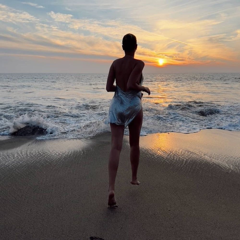 Metallic mesh fabric: Shimmering with every movement, creating a liquid glow.