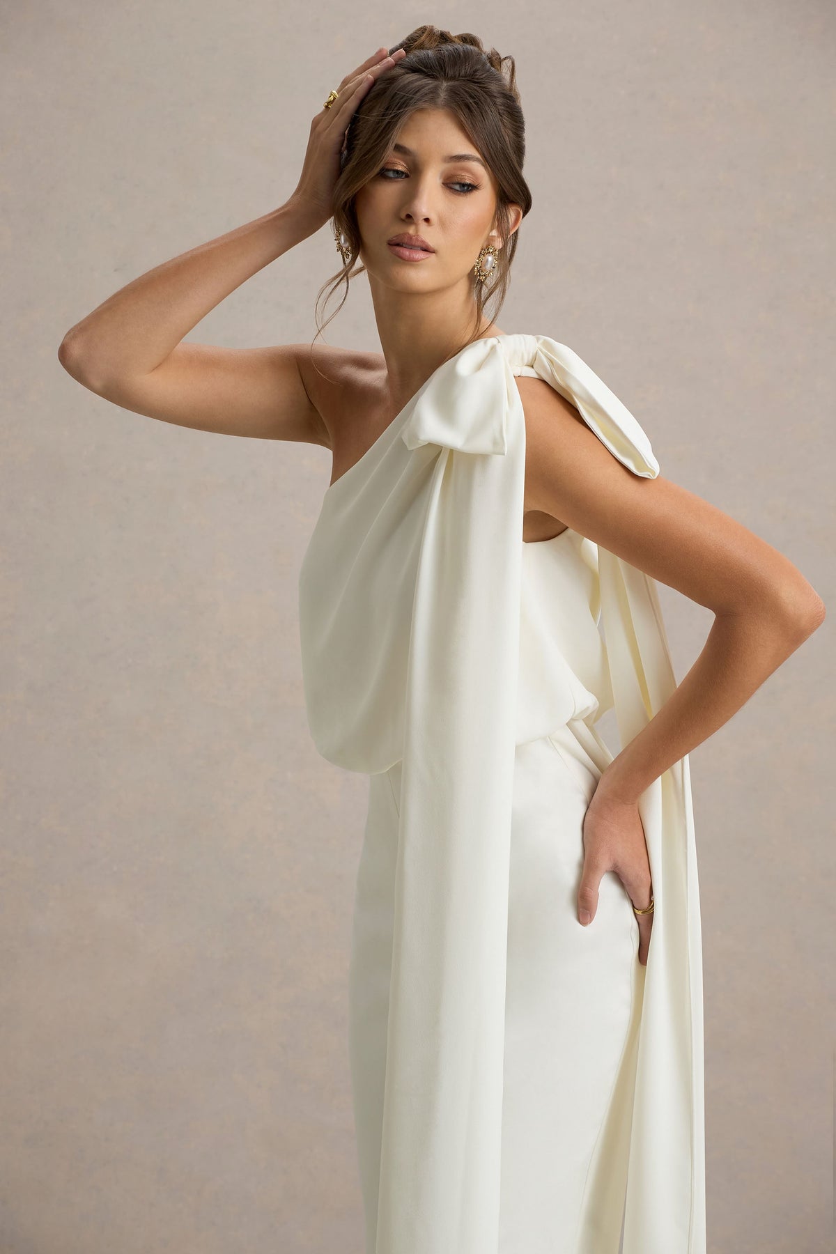 Alice | Cream Asymmetric Bow Shoulder Jumpsuit With Drape