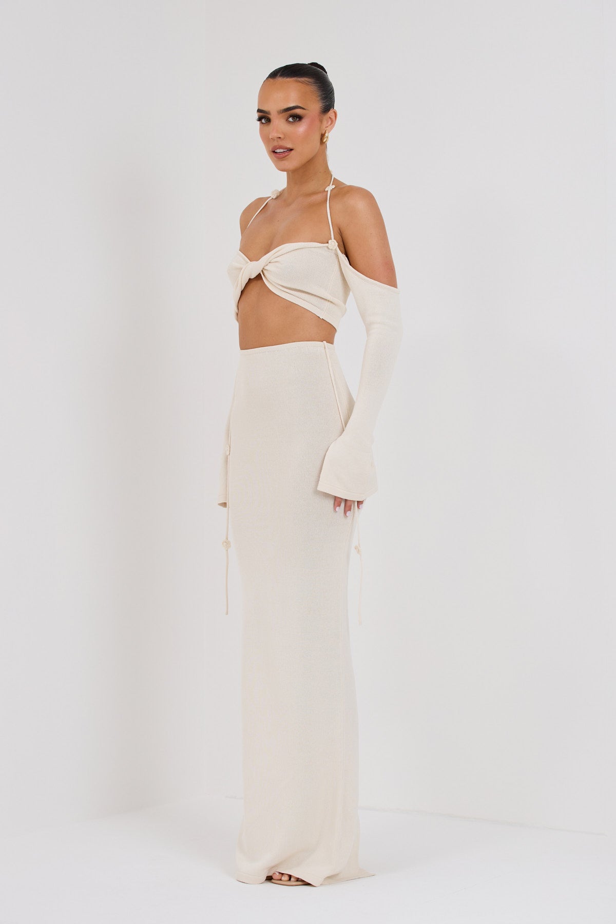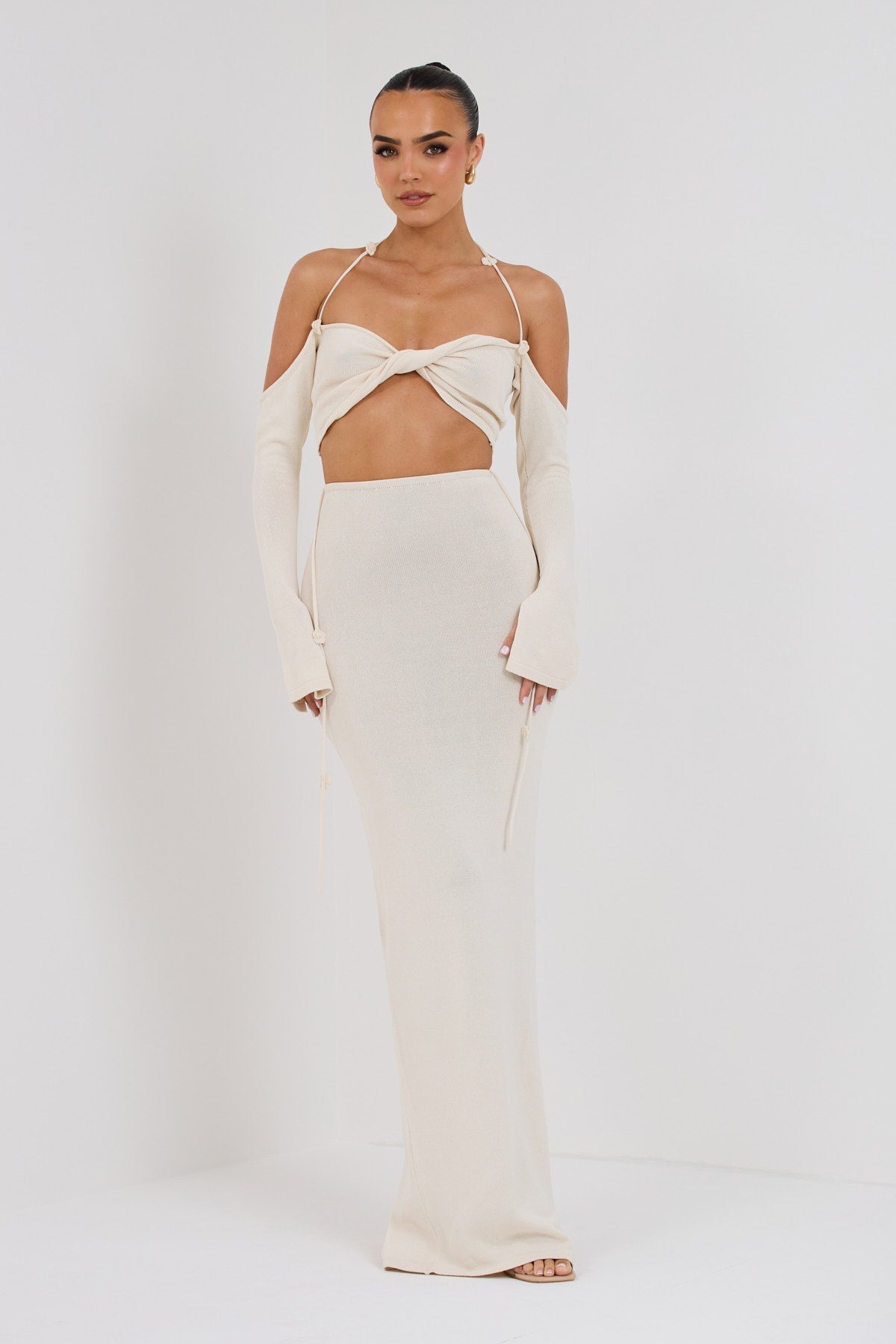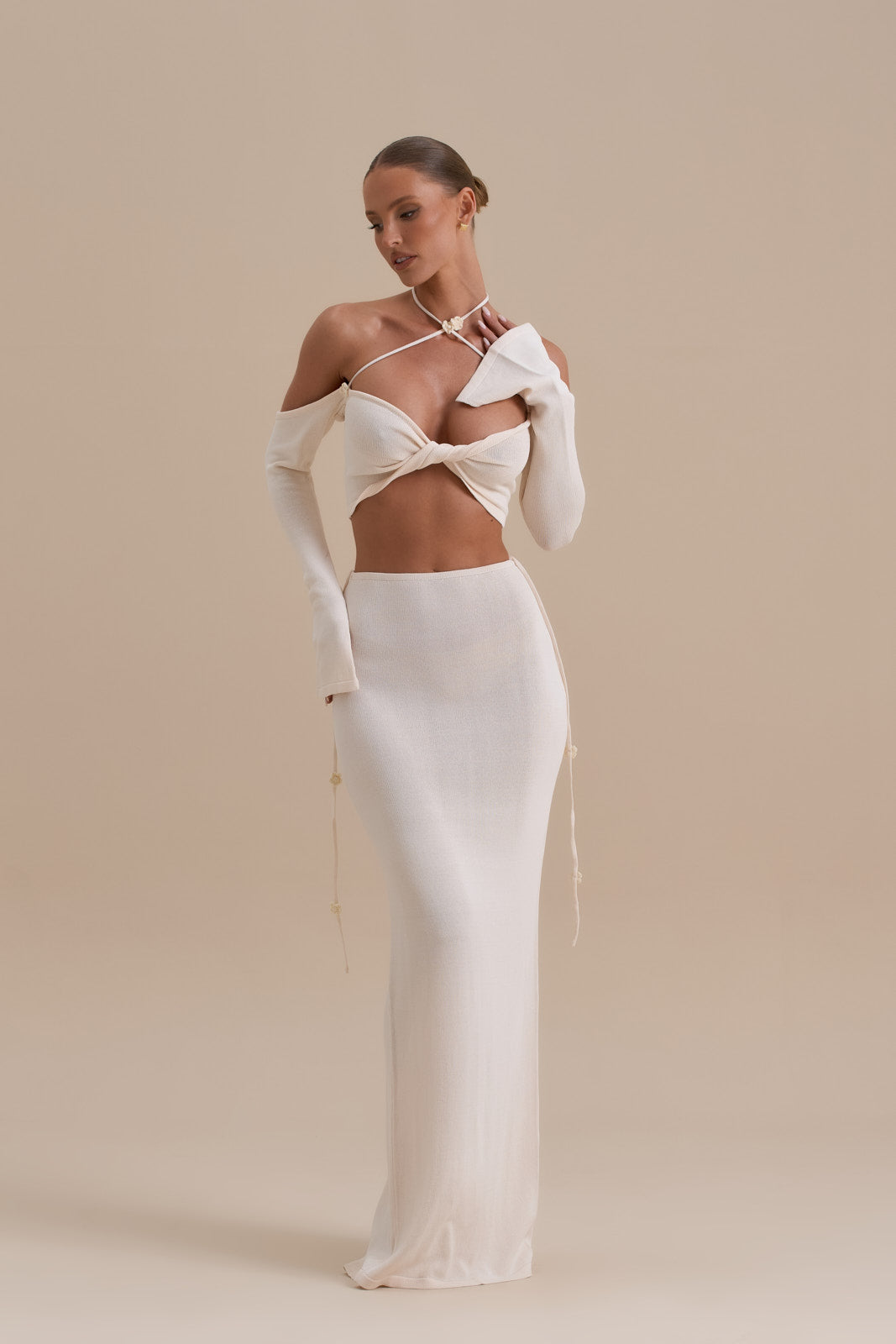 The Alicia Sleek Sculpted Set redefines warm-weather style with its flowing lines and flattering shape. Crafted from a premium fine knit with easy stretch, this two-piece set is designed to contour and celebrate every silhouette. Featuring a twisted neckline, intricate floral textures, and adjustable straps for natural support, it's your ultimate choice for sun-drenched getaways and starry nights.